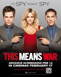 During my march break, mom and i went to the theater and whatcd the movie this means war staring Resse witherspoon. So i am not to sure how to do one of these so bear with me for a while untill i get the hang of this.So in the movie this means war its thes two spy's who re best friends they allways work together on every mission. One of the spy's hes starting to feel lonely and desides to try a dating site and ther he finds Resse witherspoon. Sorry for not remembering the names of the characters. her best friend put her up on that site whithout her knowing. when she found out about it she tried to hut it down but thn she seen the spy on the site. So they ended up meeting and hade a great time together and Resse after the date gose the movie rentale store to get a movie and runs into a guy who is trying to pick her up and it ends up being the other spy. a few days later when the spy's are at work tey both talk about meeting this girl and since they wher so happy they both pulled up her picture on the laptop and found out that it was the same girl. Since they are such good friends they dident whant to go here you take her so thing start to get heated up and this is how the title this means war commes into play i thought it was an exelent movie and thats it for this week
